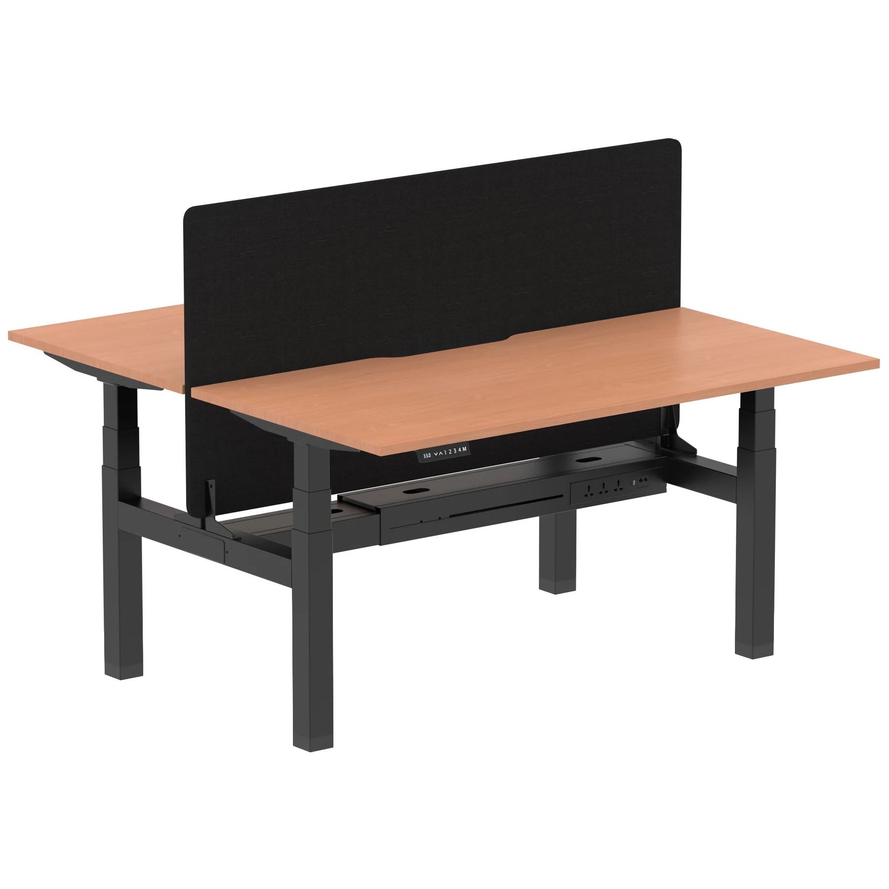 Ebony Black Shallow Electric Height Adjustable 2 Person Rectangular Back to Back Desks