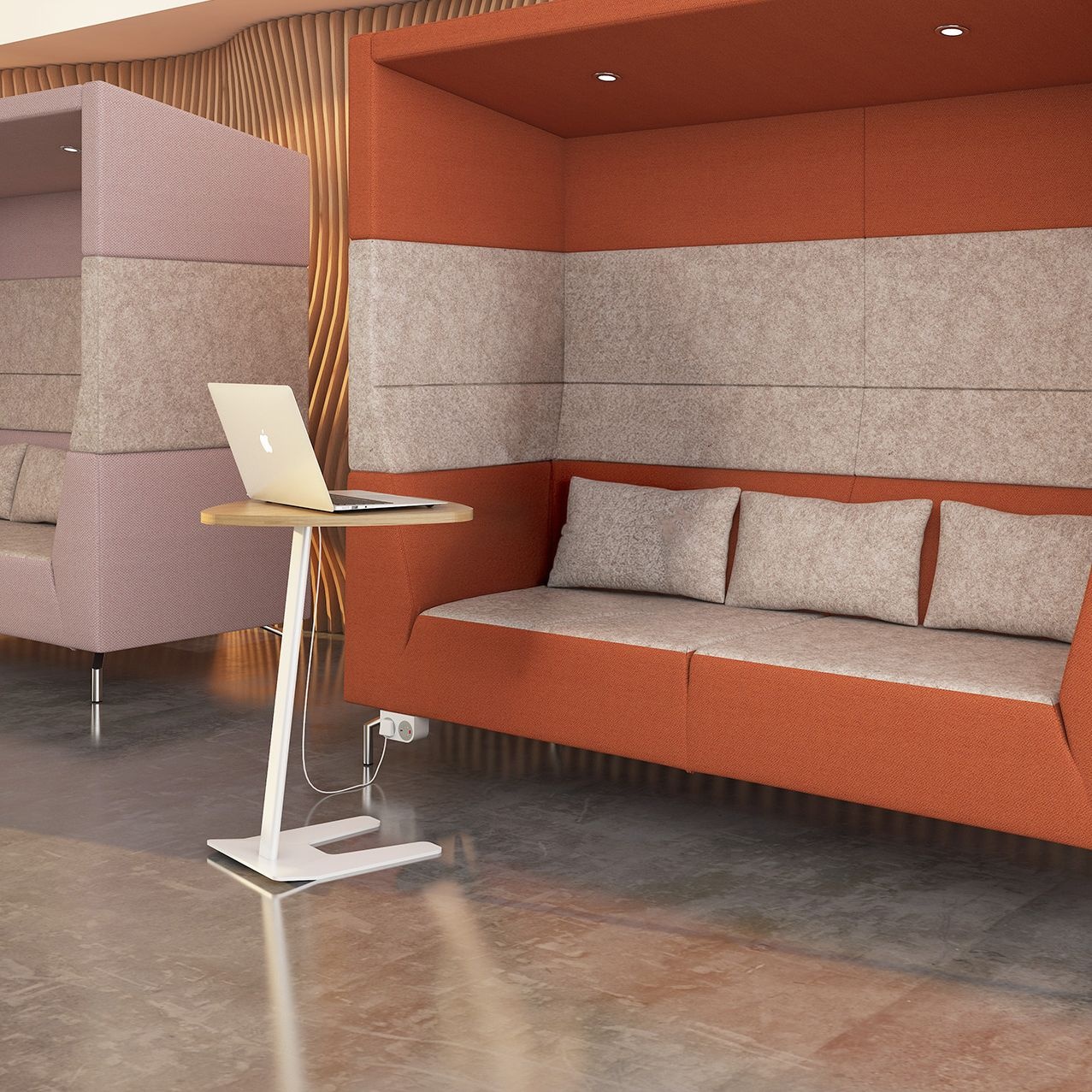 Use alongside seating in social spaces, reception and breakout areas for a cool touchdown solution.
