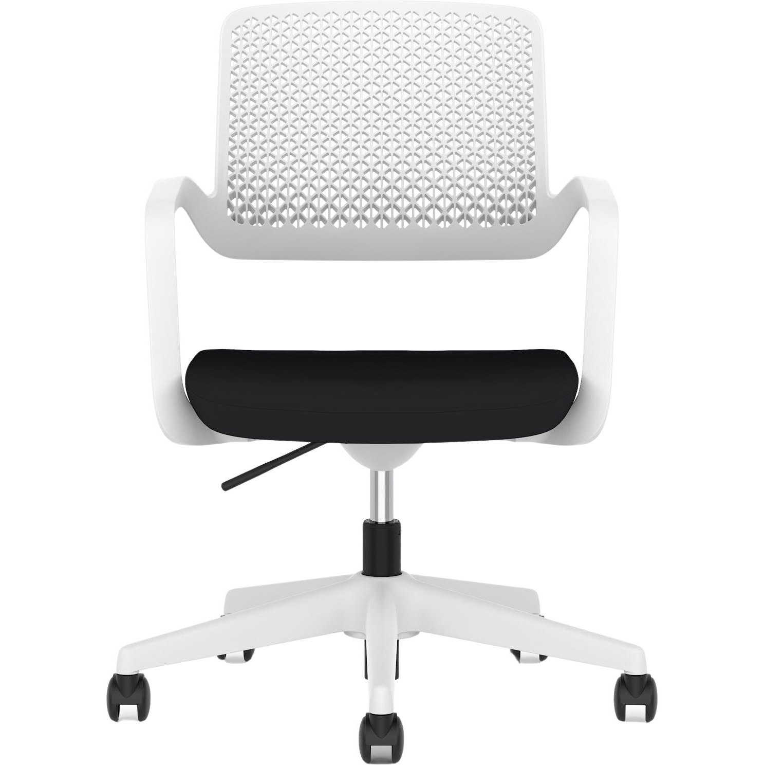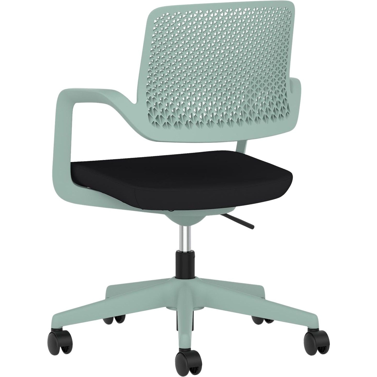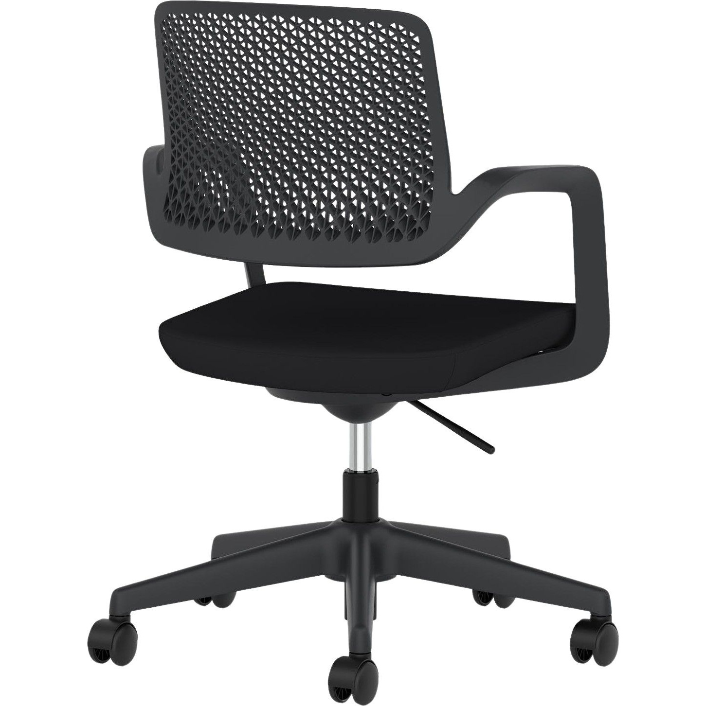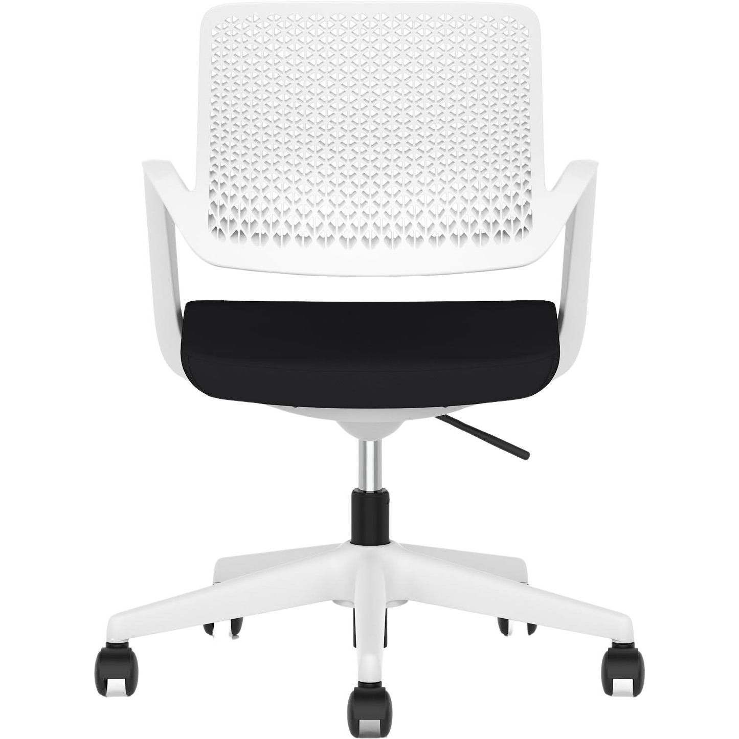 Gas assisted seat height adjusts the chair so the feet are planted firmly on the ground. Thighs should be angled slightly downward for optimum support.
