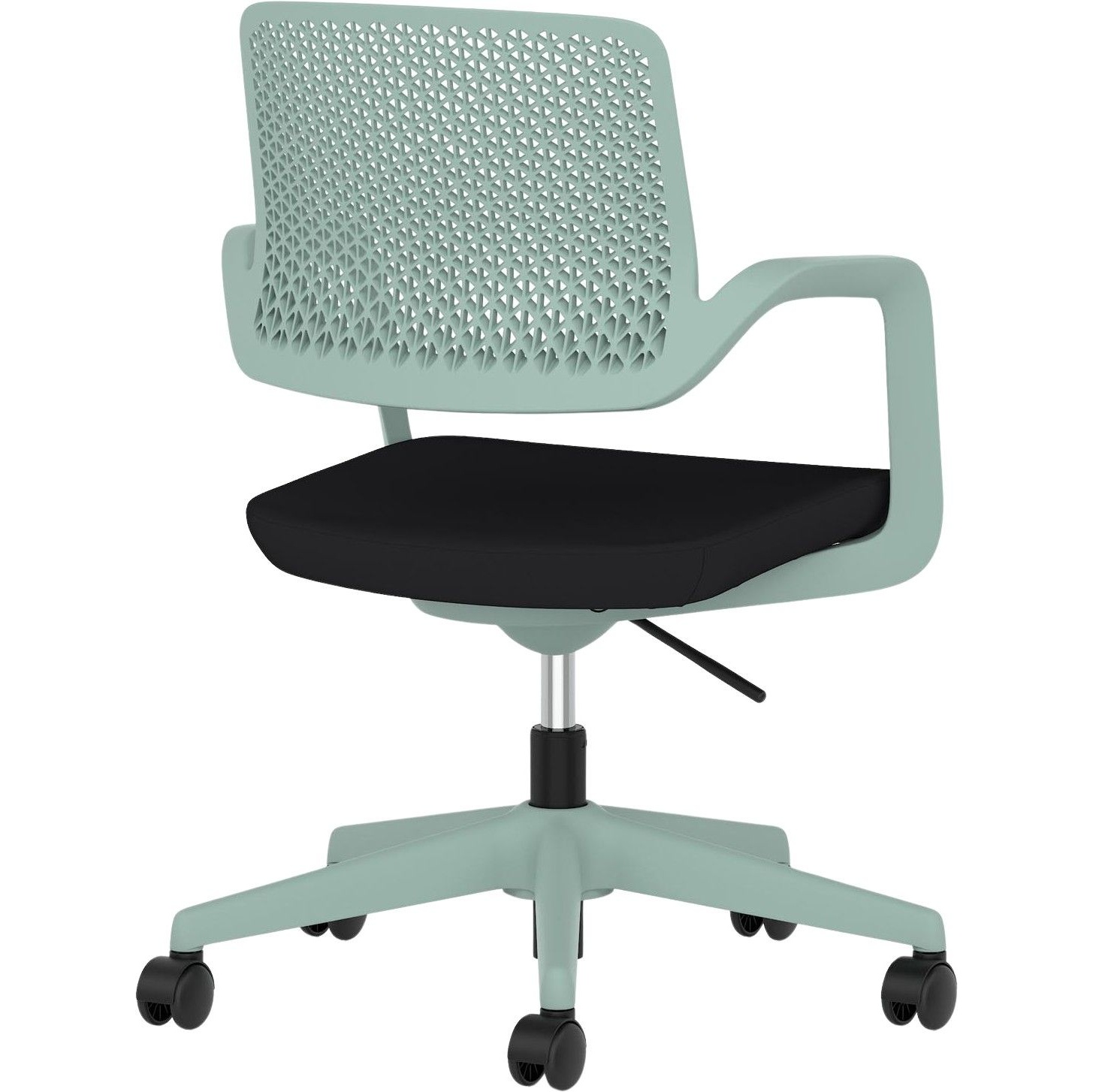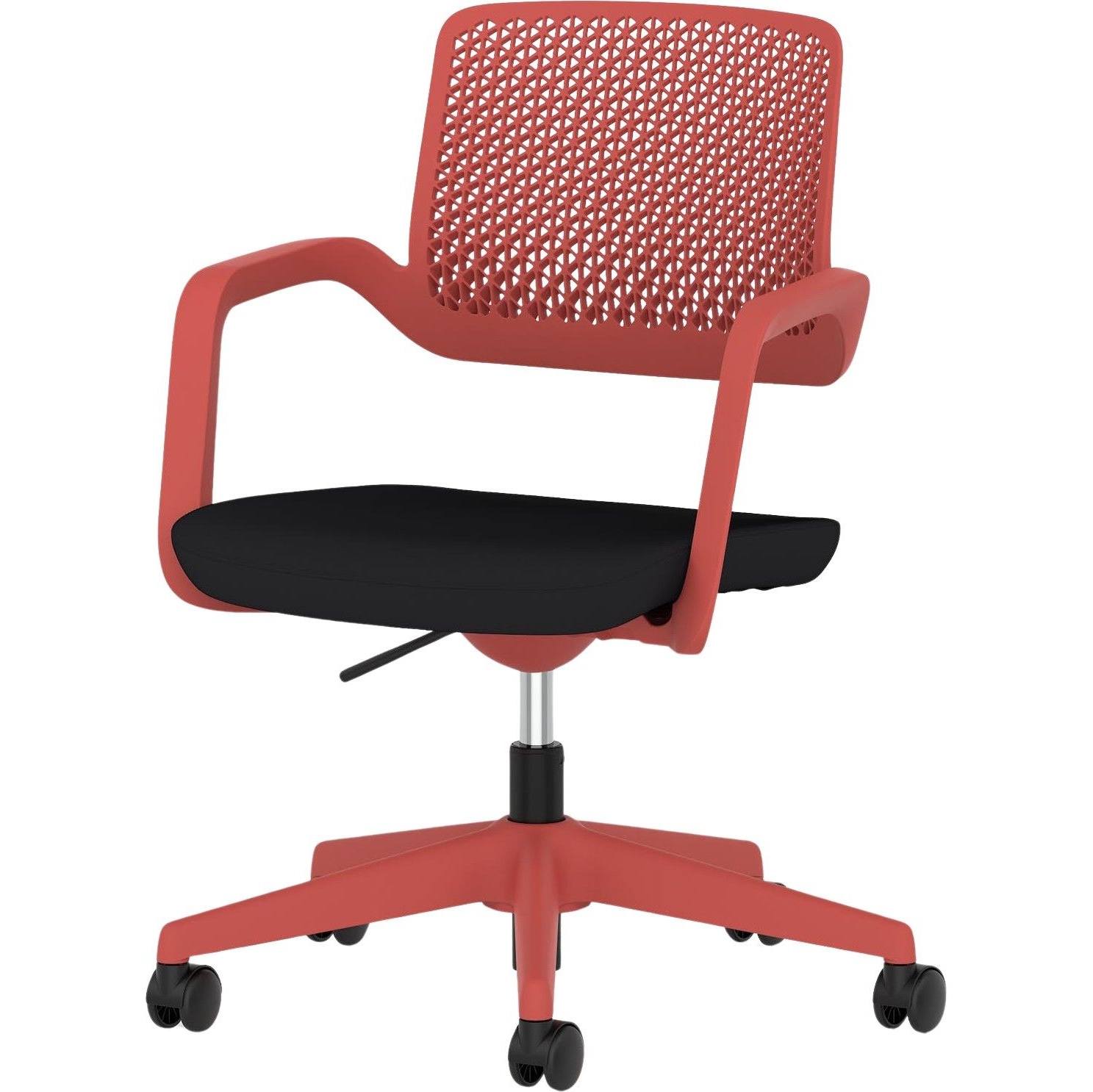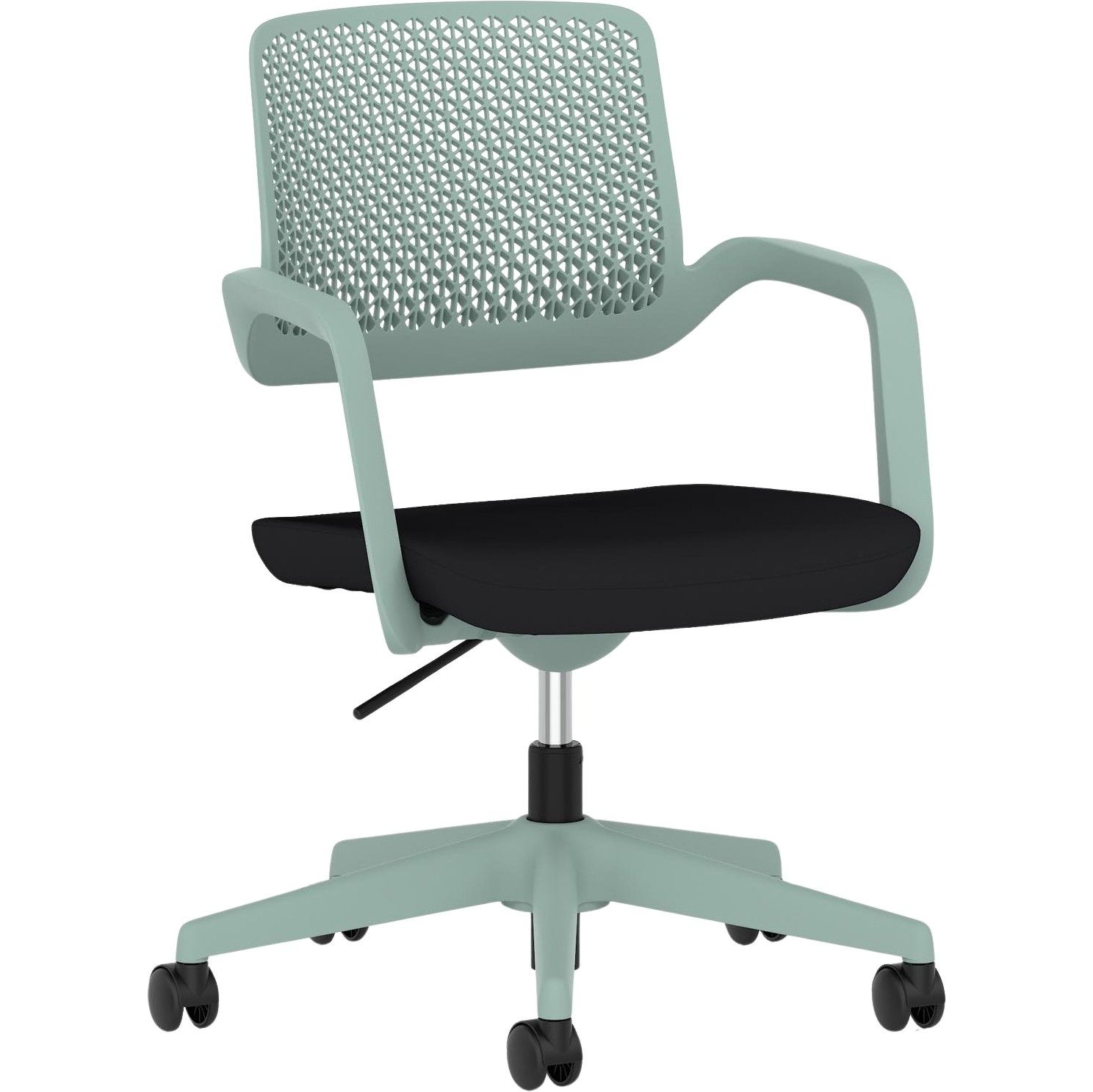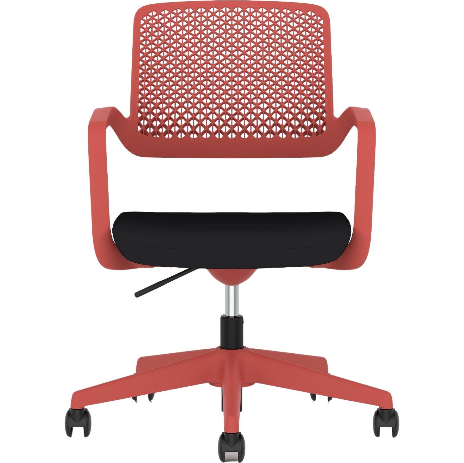 Gas assisted seat height adjusts the chair so the feet are planted firmly on the ground. Thighs should be angled slightly downward for optimum support.
