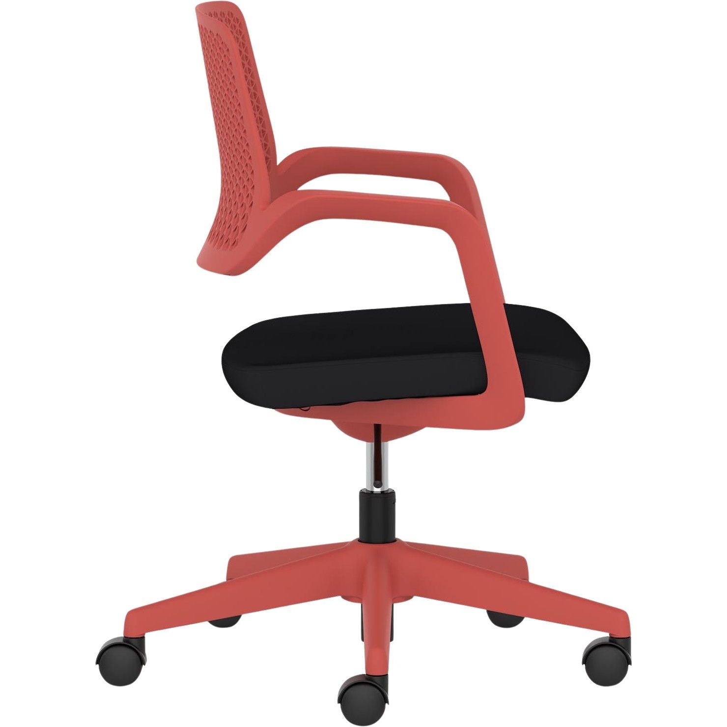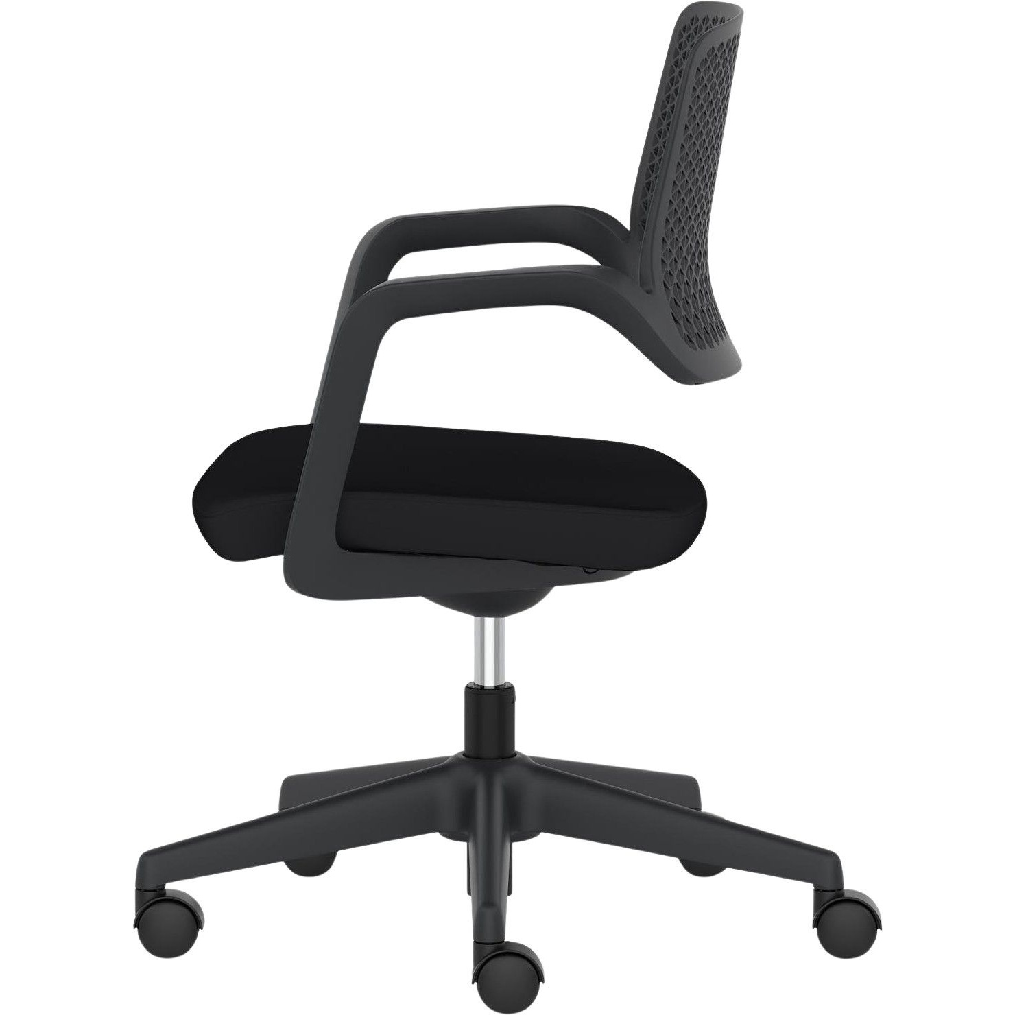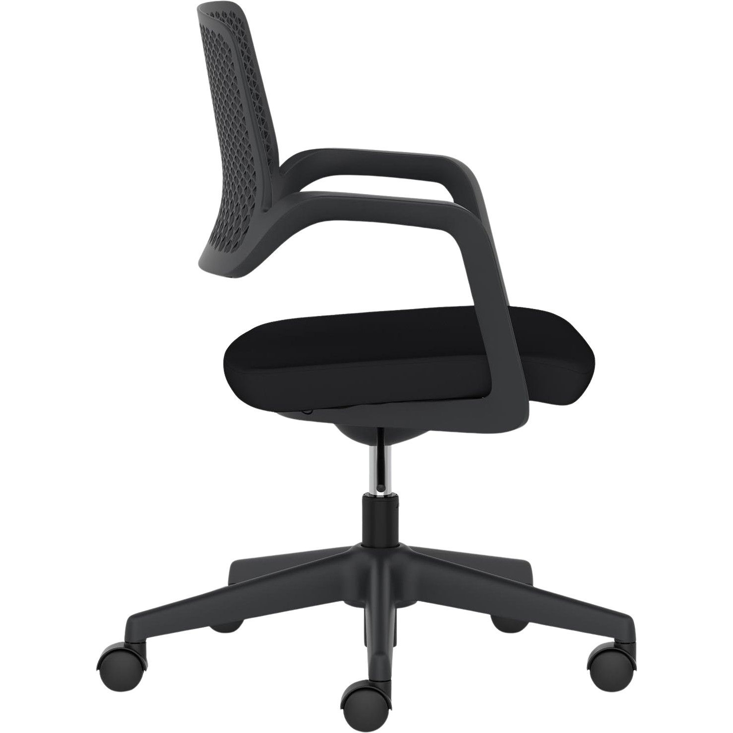 Sculpted polypropylene backrest with a hardwearing black fabric seat.