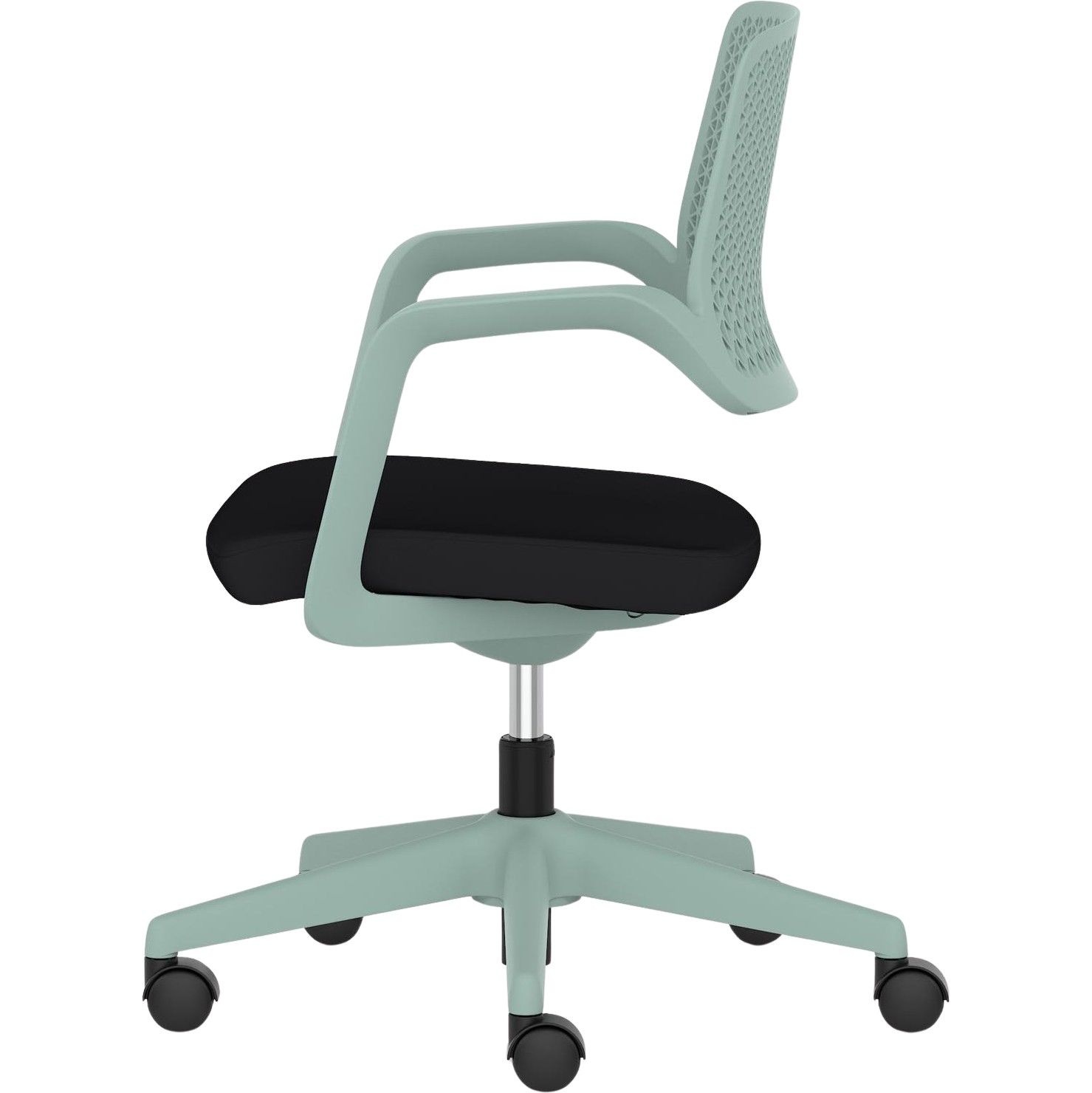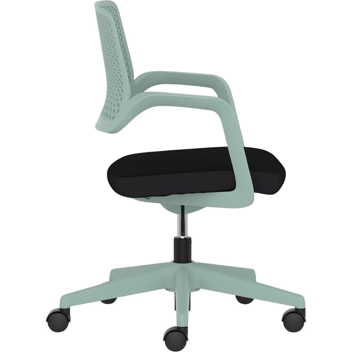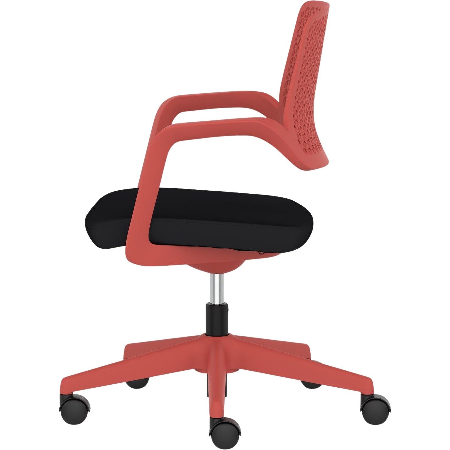 Sculpted polypropylene backrest with a hardwearing black fabric seat.