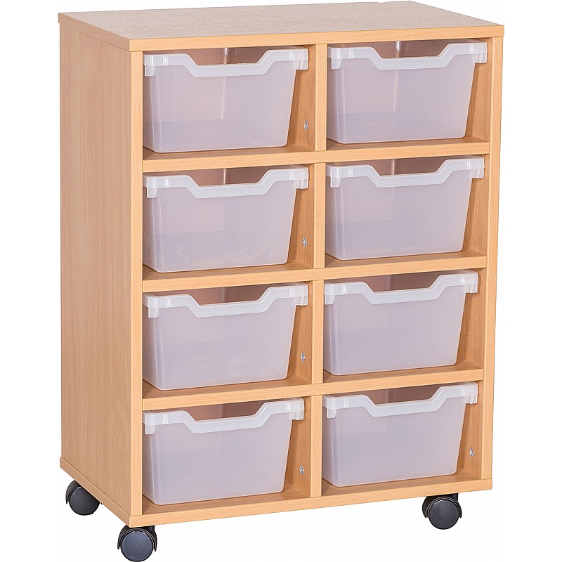 Versatile double column mobile storage unit complete with 8 deep Cubby trays.
