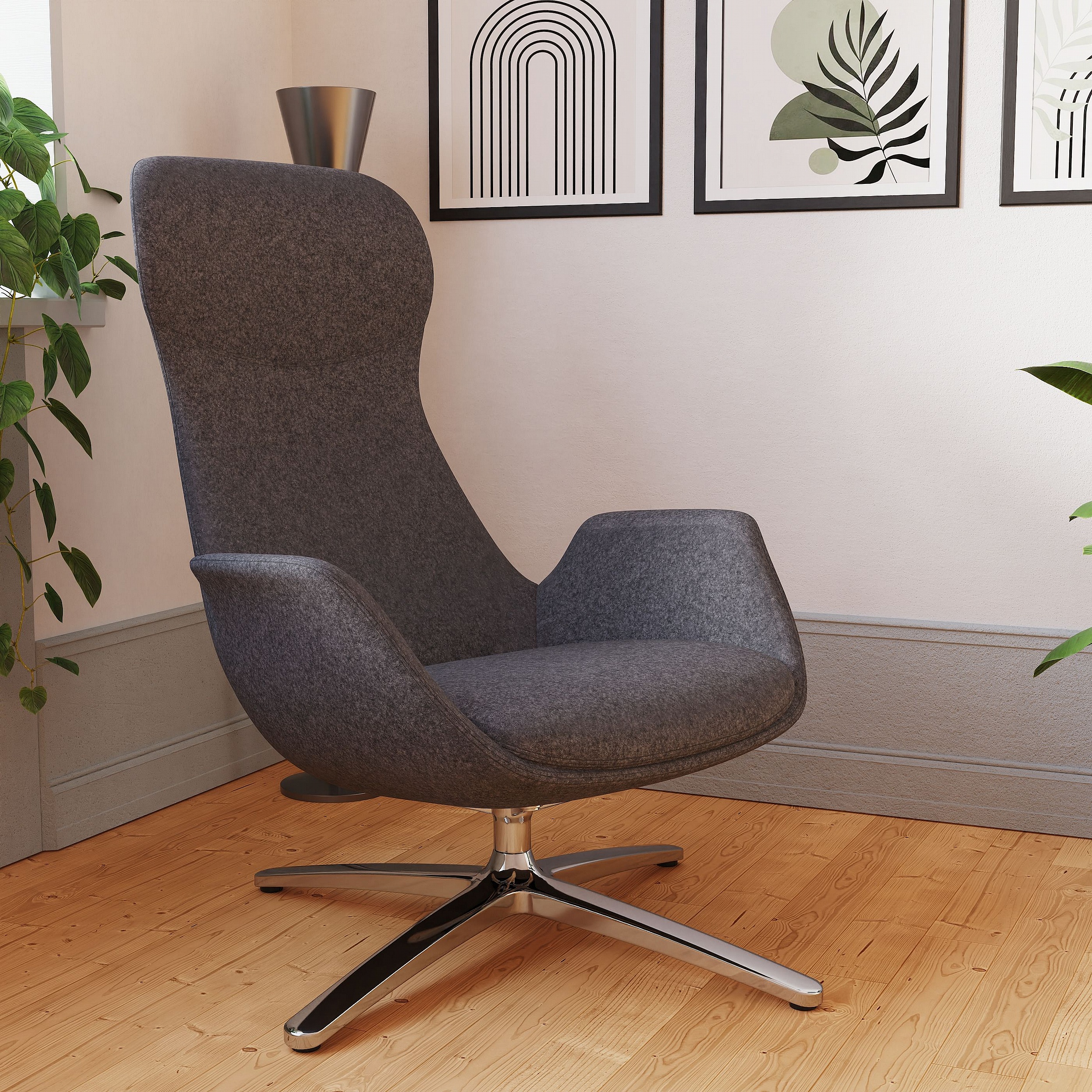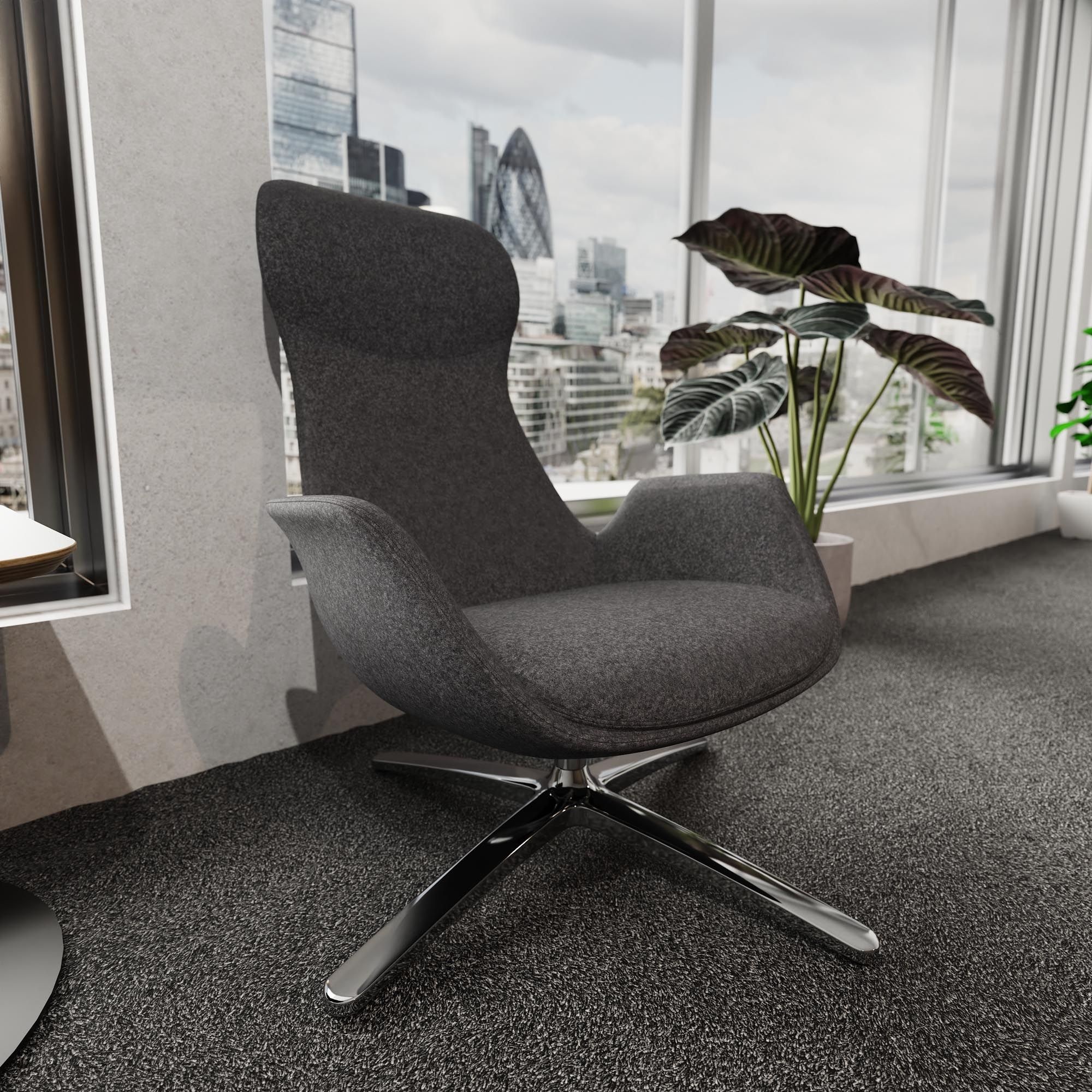 The Etta Executive Lounge Chair blends sculptural form with everyday comfort. Enjoy smooth, effortless rotation with the 360 degree swivel seat, allowing you to stay flexible, move freely, and remain comfortable throughout your day. Strong lines meet a soft landing for a refined, relaxed seating experience.