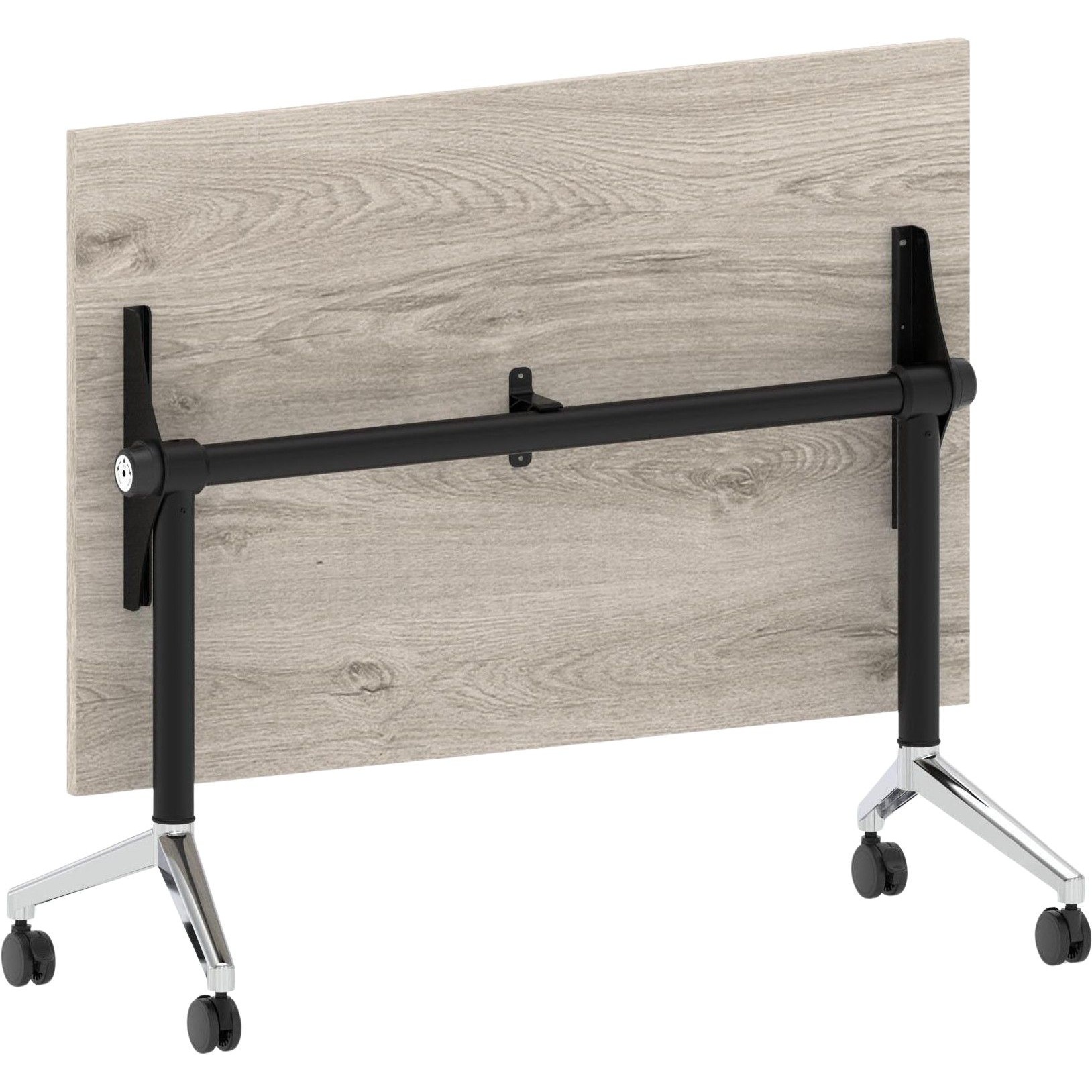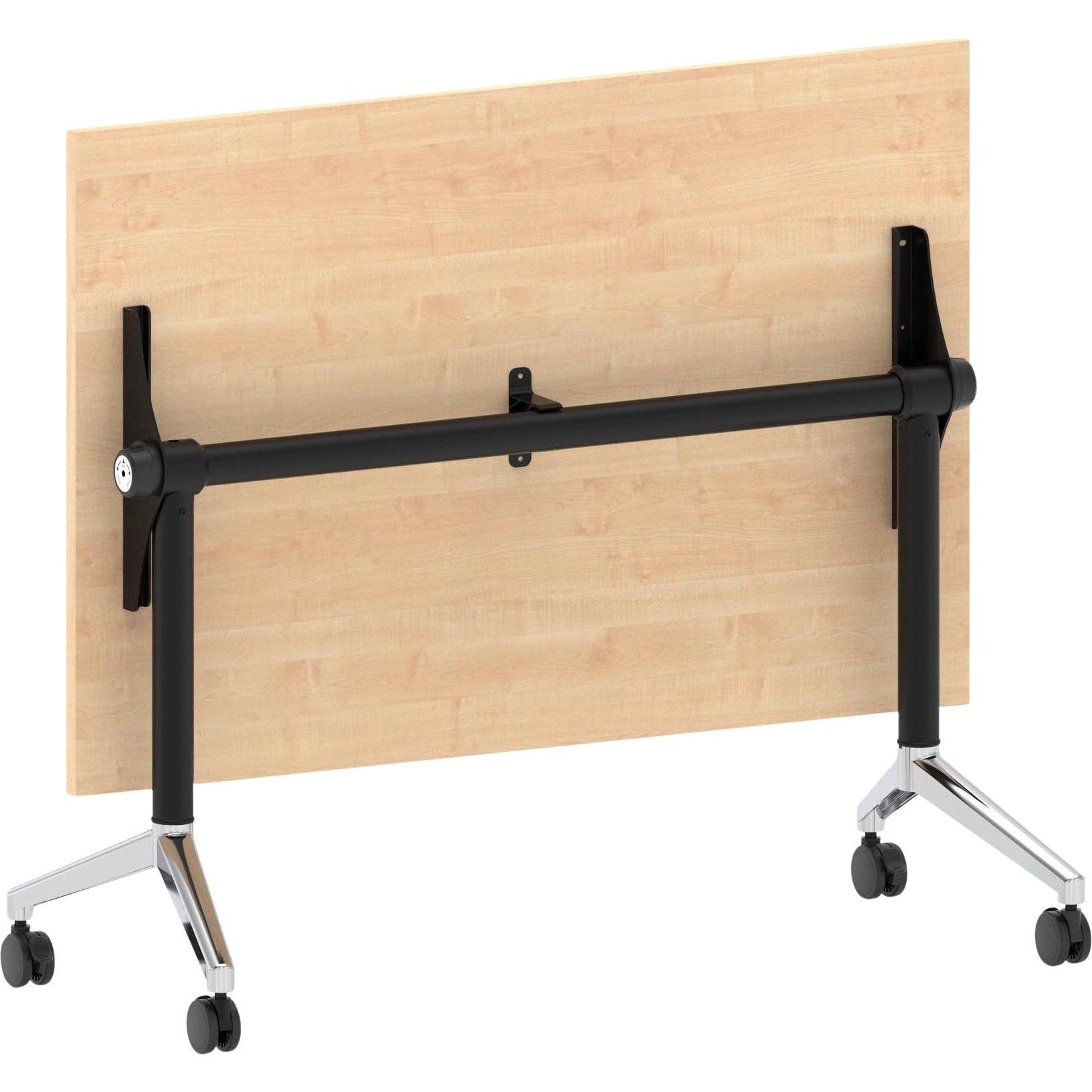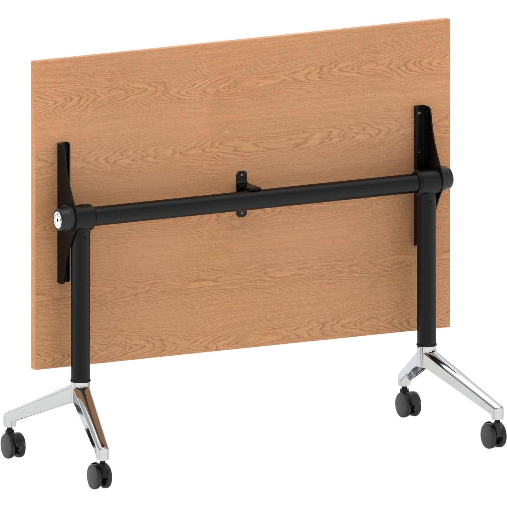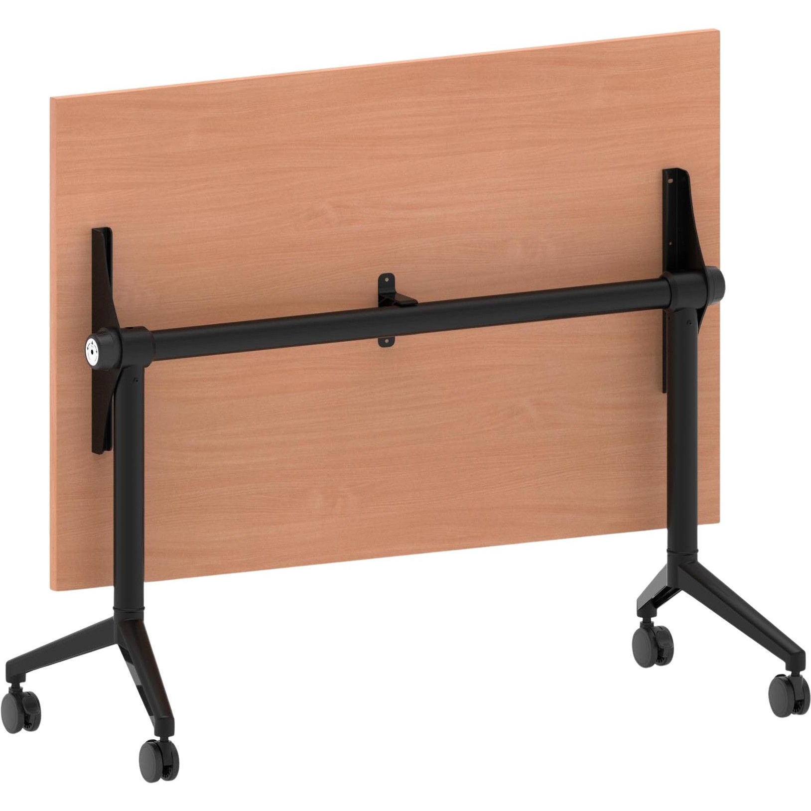 Table can be flipped on its side for storage when not in use, saving space.