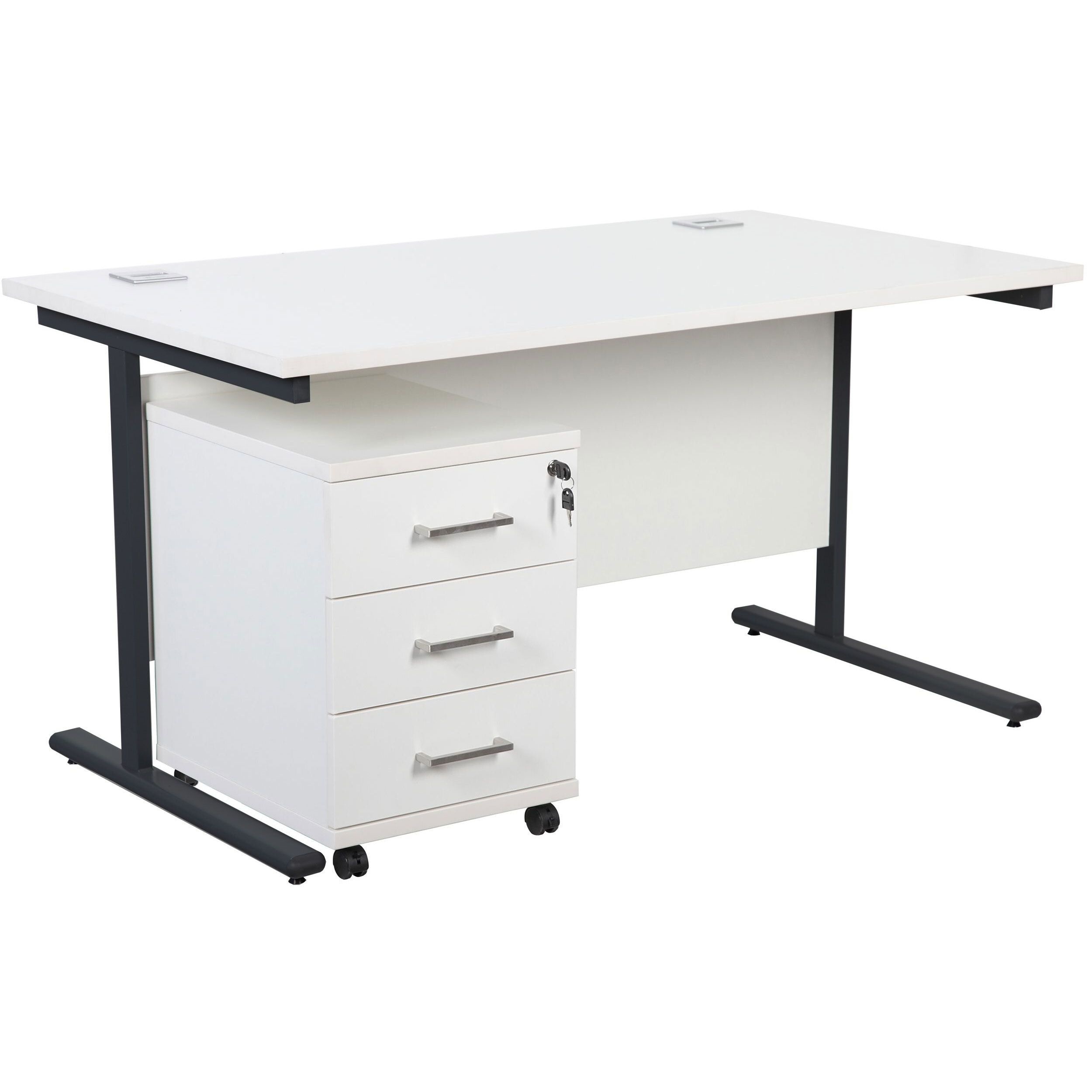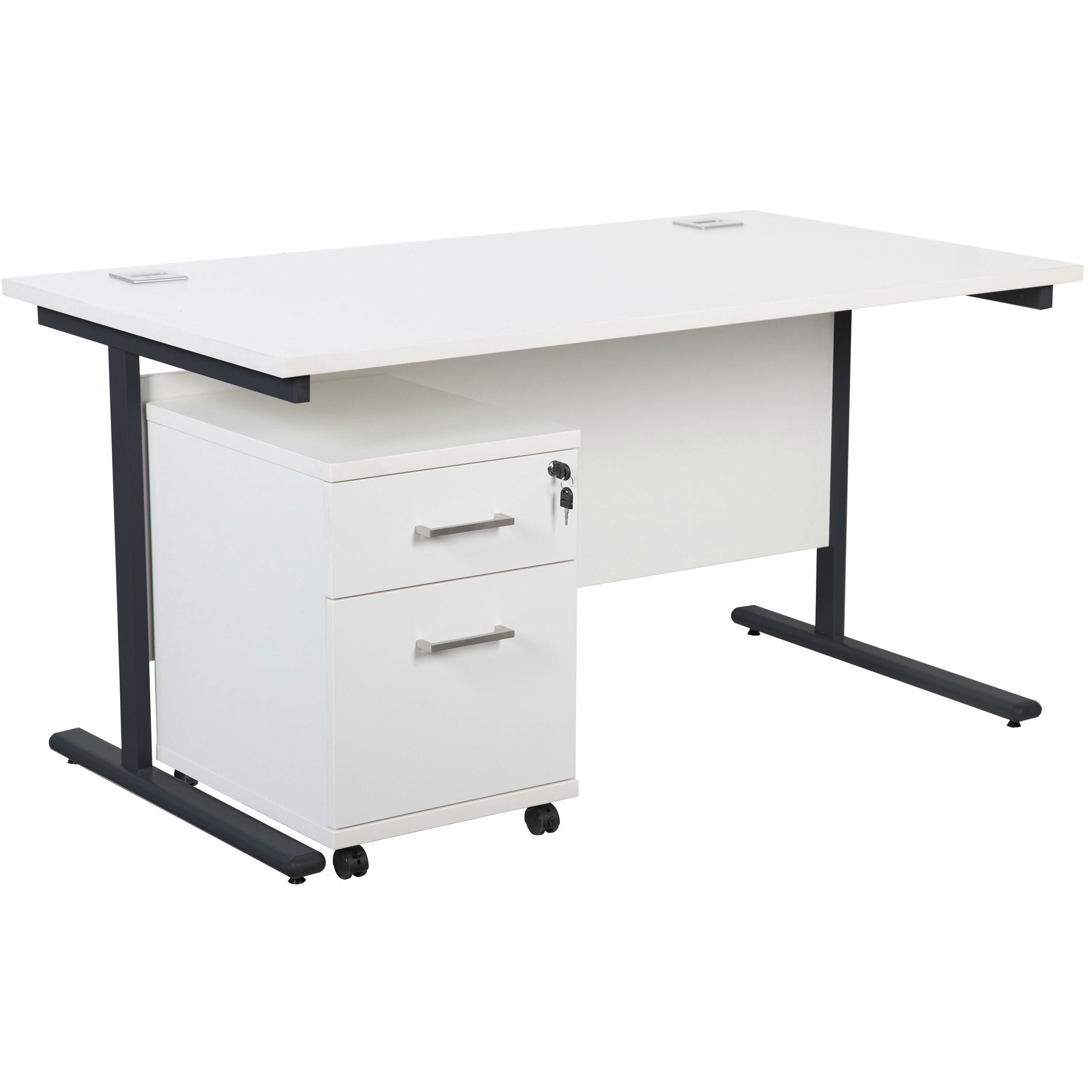 Horizon Rectangular Cantilever Office Desks With Single Fixed Pedestal