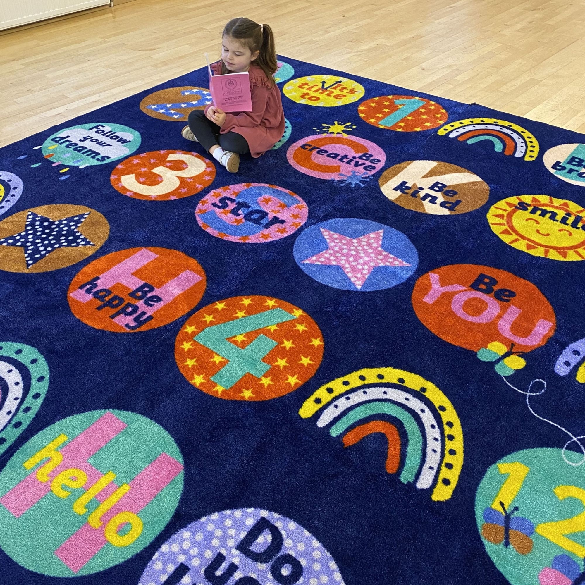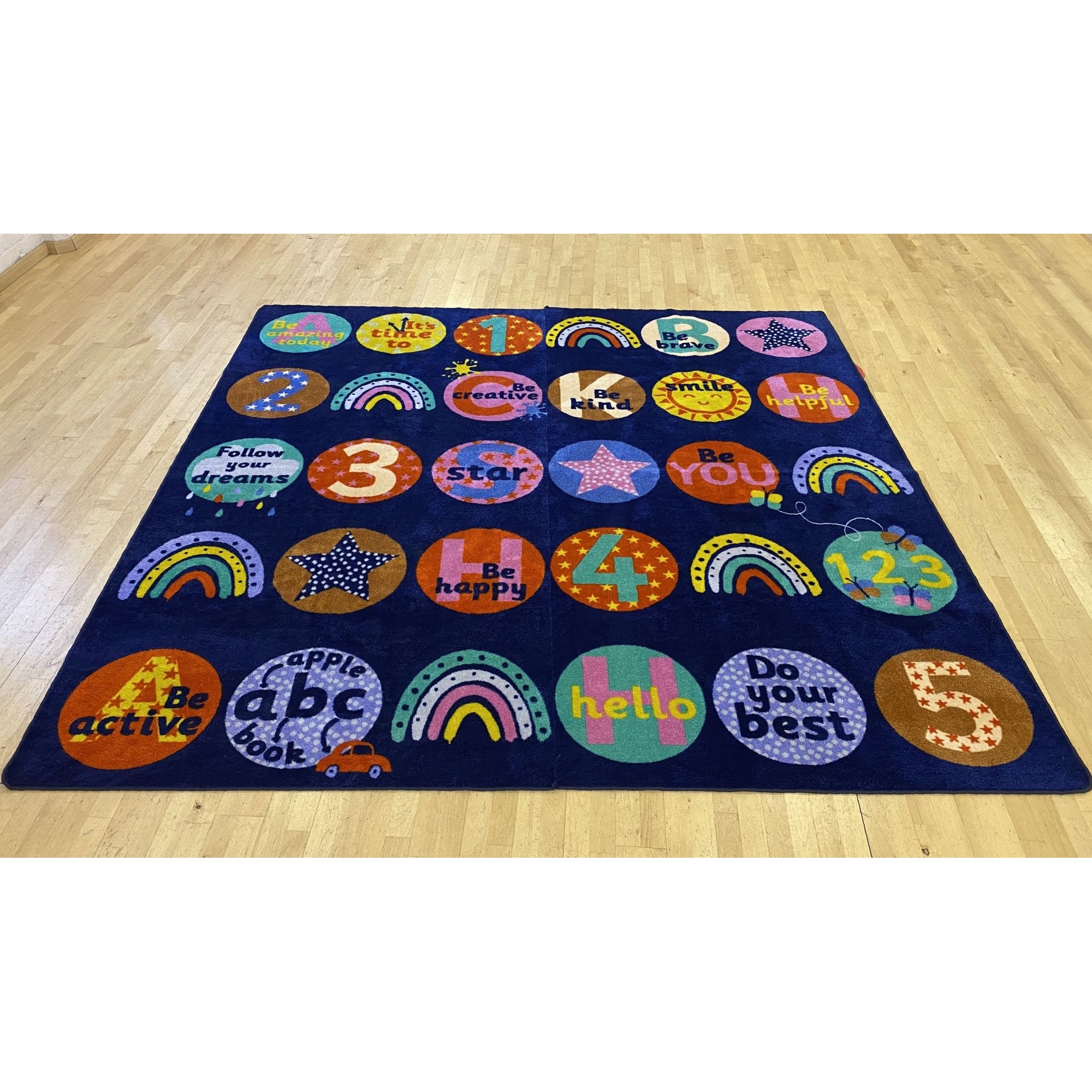 Learn in style with the KinderColour Positivity Wellbeing Placement Carpet.
