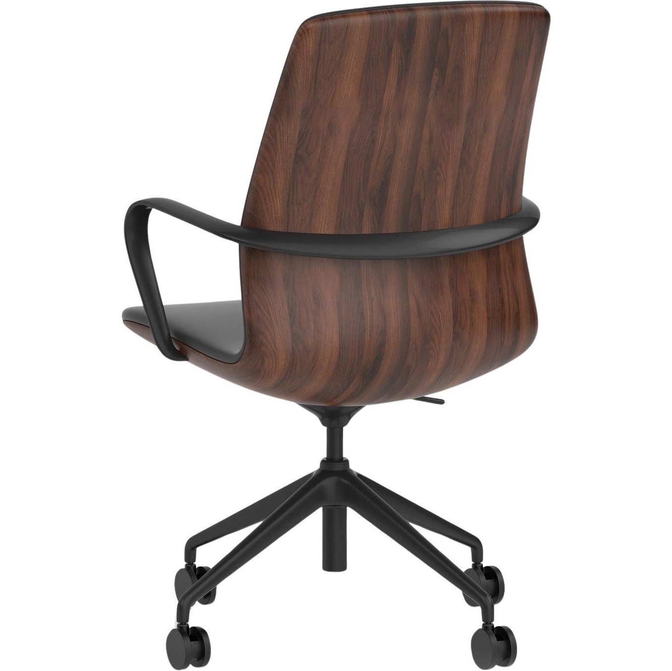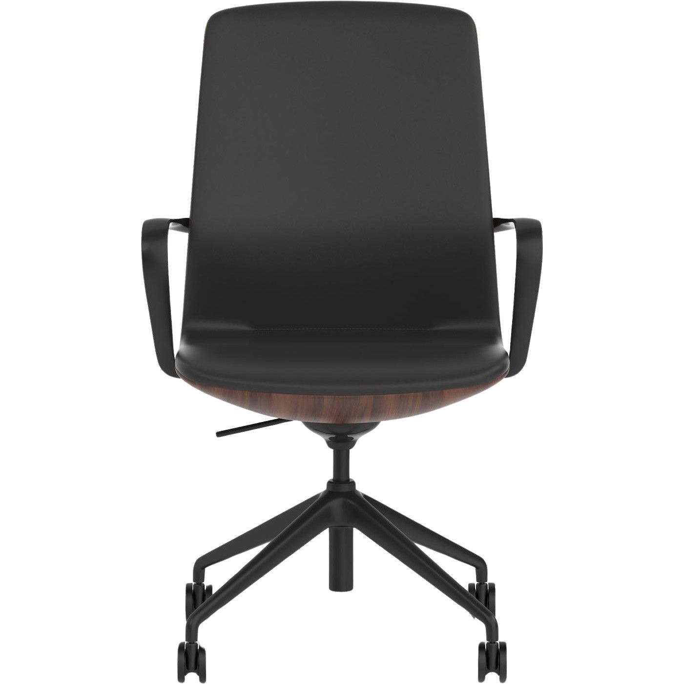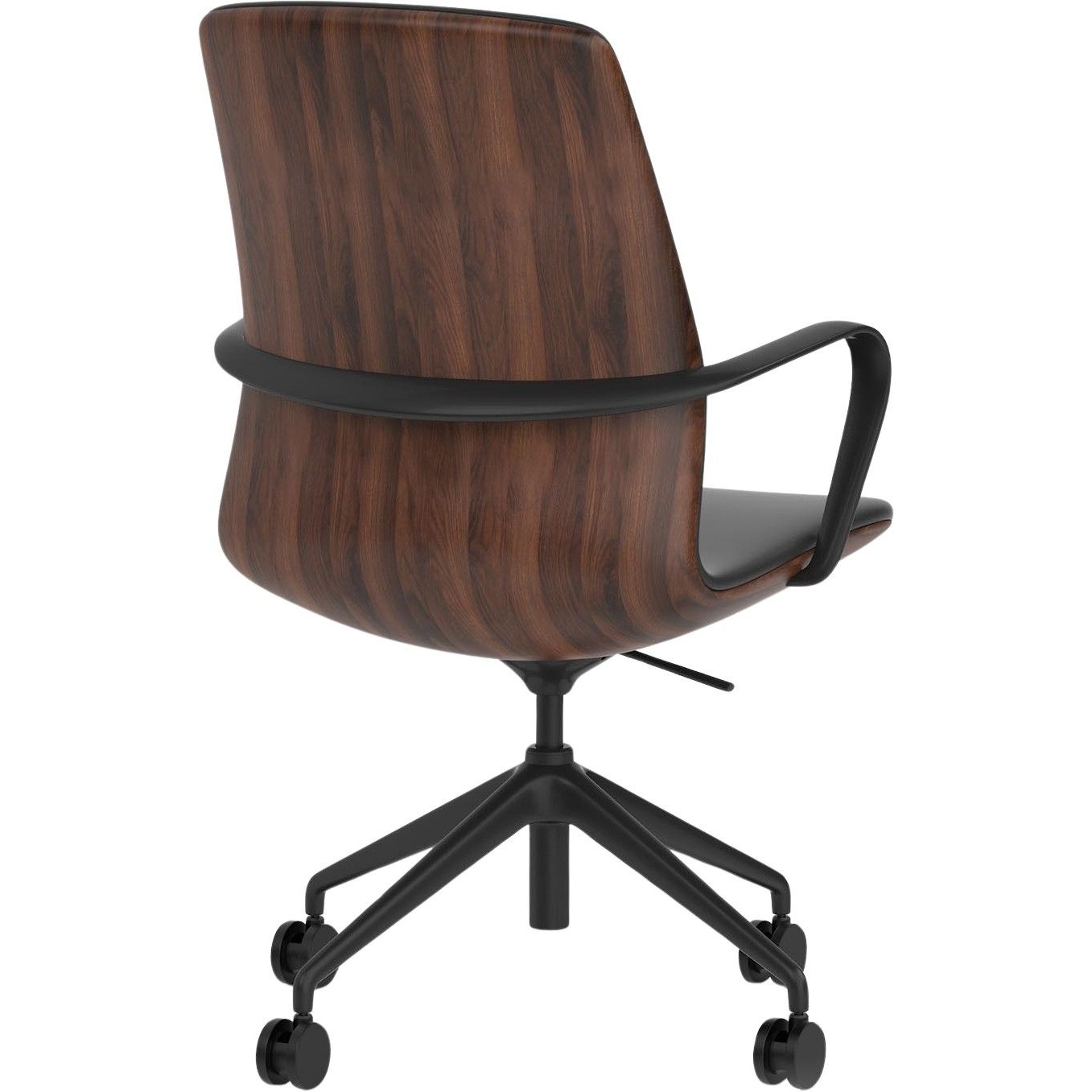 The Mara chair delivers effortless control in a refined, modern silhouette. Its deep, black leather look seat contrasts beautifully with the warm, executive character of the walnut shell, all grounded by a sleek black frame. Crafted to bring understated sophistication to any workspace, Mara combines contemporary style with a confidently elevated presence.
