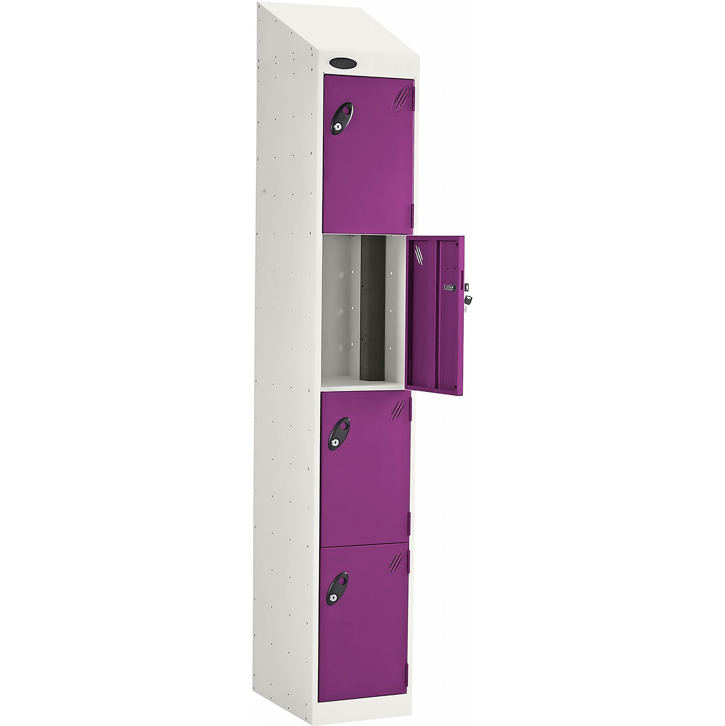 The sloping top keeps the area tidy by making cleaning easier and preventing items from being placed and left on top of the locker.