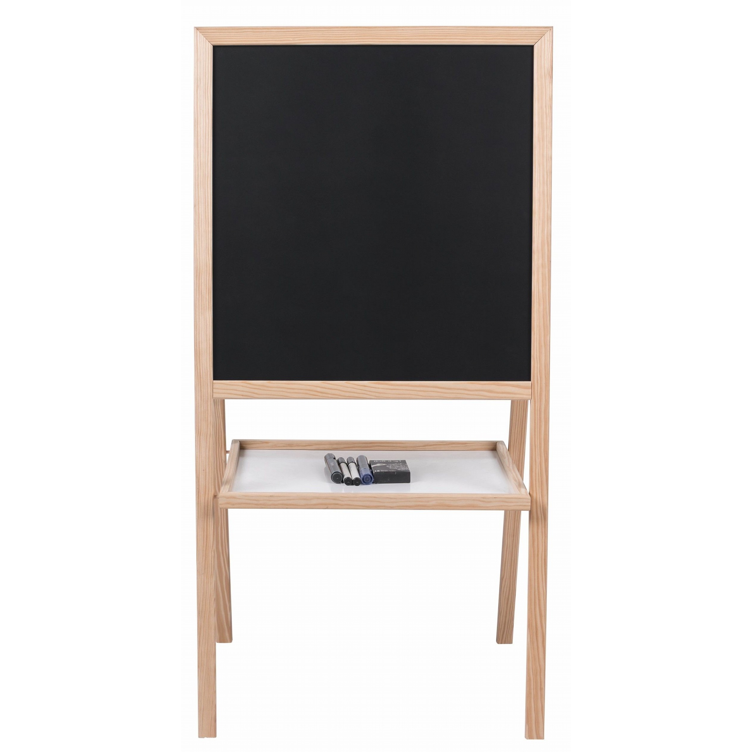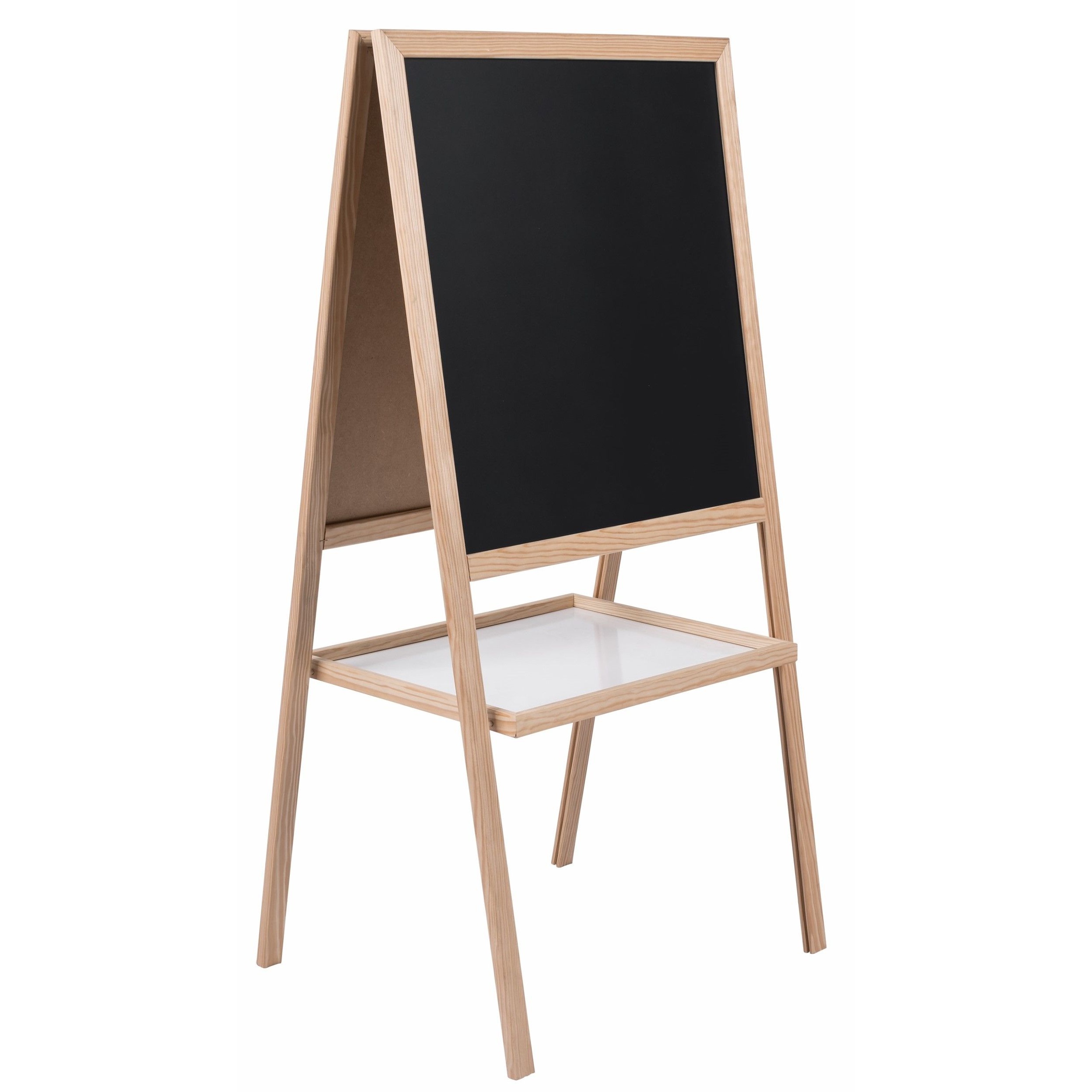 This double-sided design includes a dry-wipe whiteboard on one side and a chalkboard on the other.
