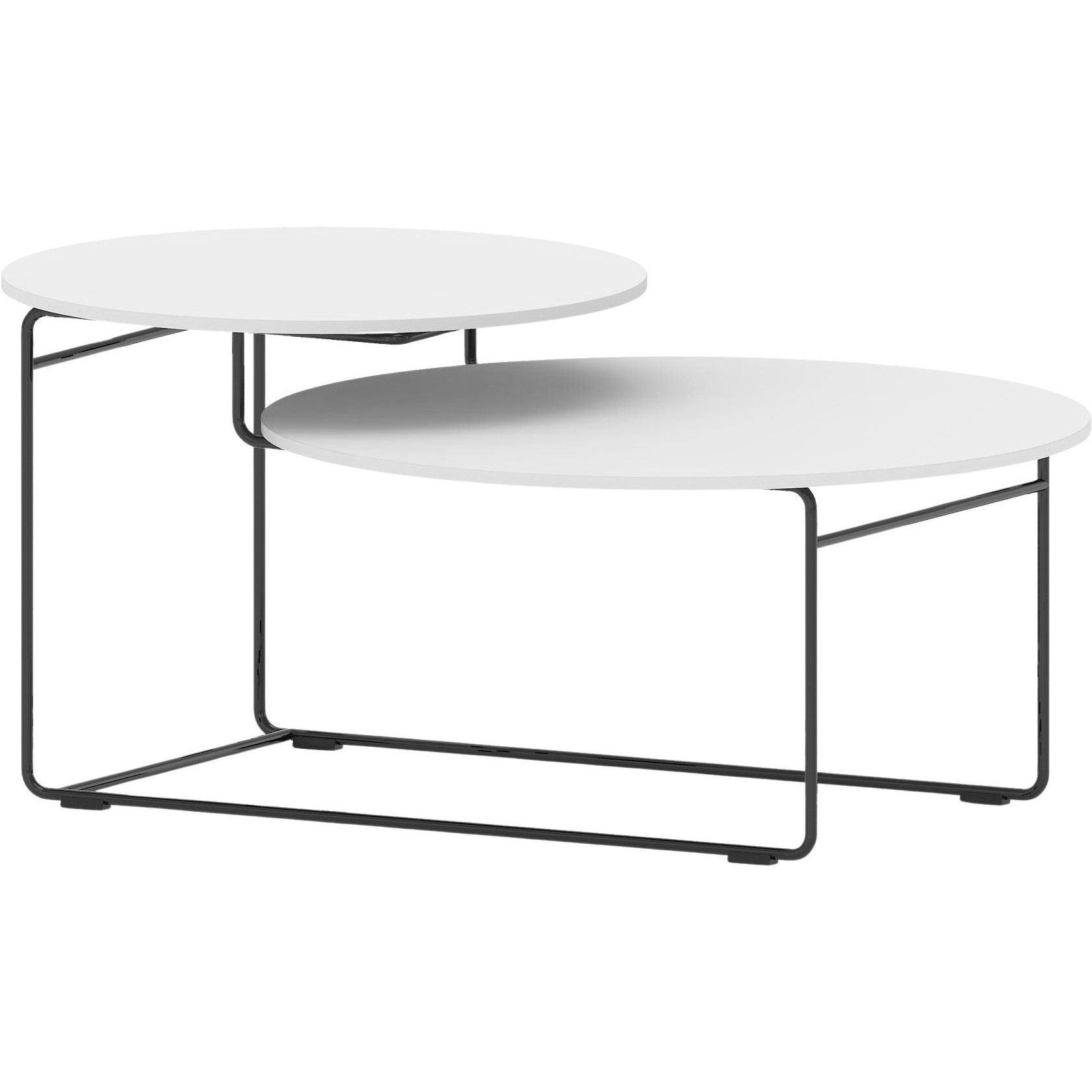 Sturdy tabletop sits atop a sleek sled base frame offered in a black or white finish.