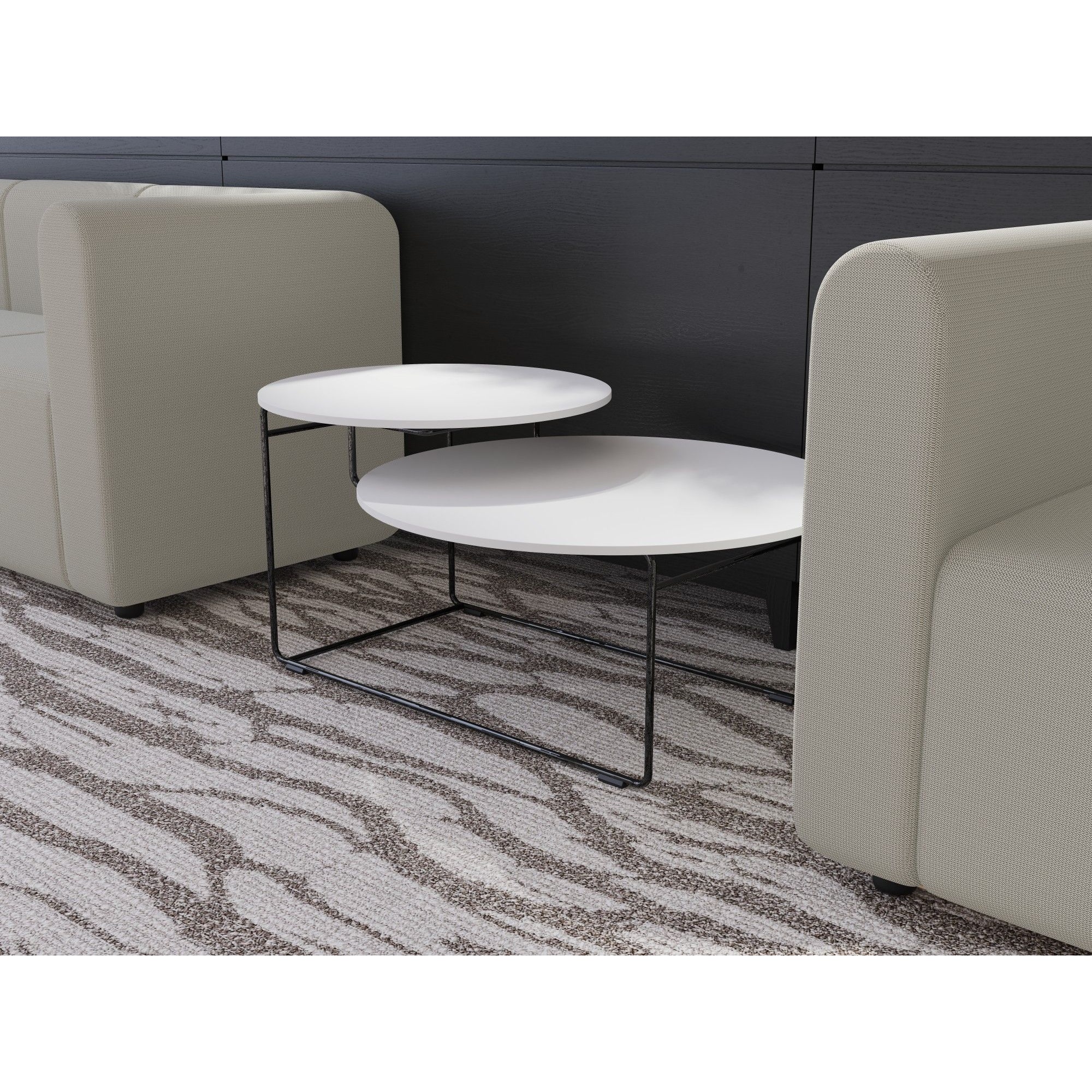 Perfect for relaxed meeting areas, hotel lounges, or waiting spaces where visual lightness and functional layering are equally important.