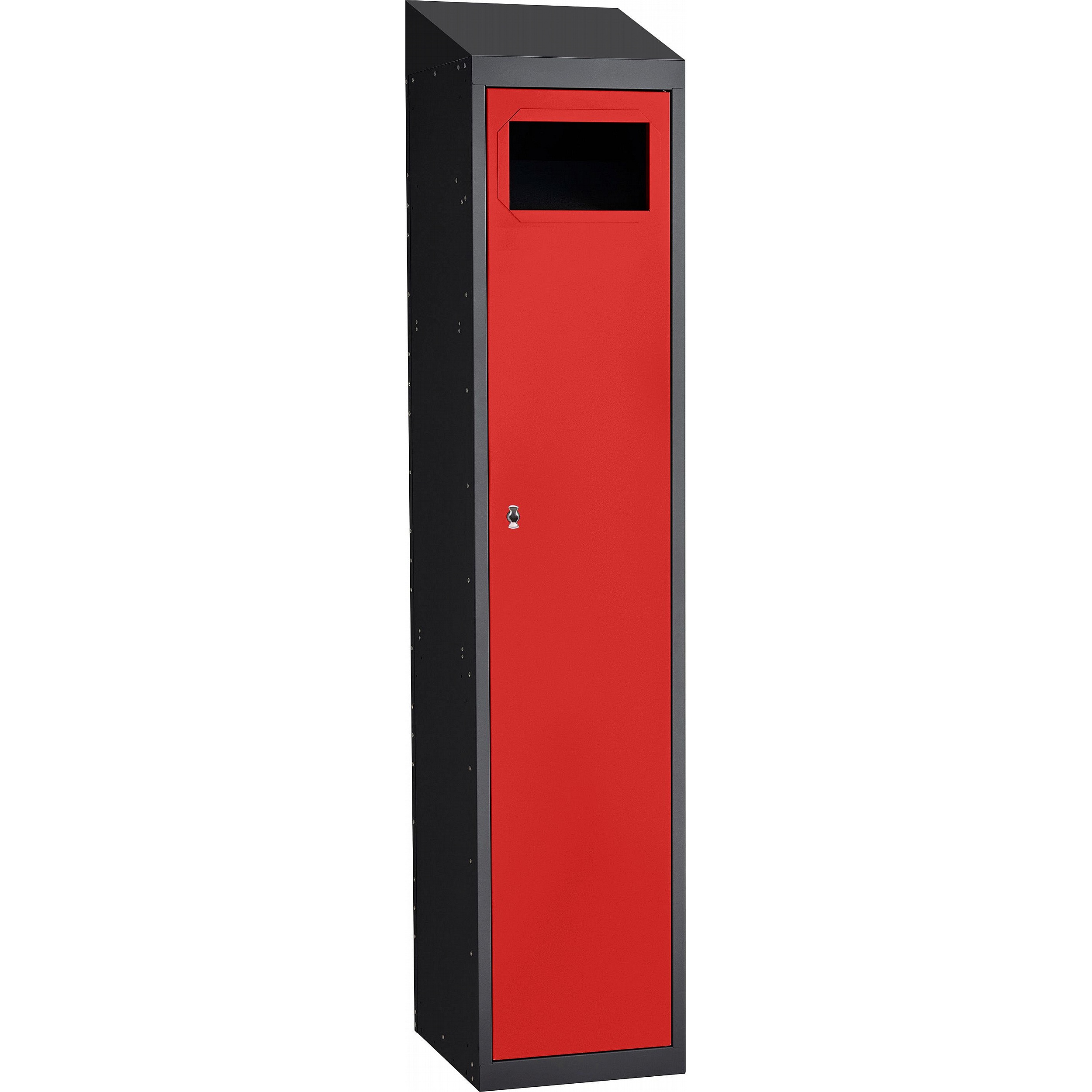 The sloping top keeps the area tidy by making cleaning easier and preventing items from being placed and left on top of the locker.