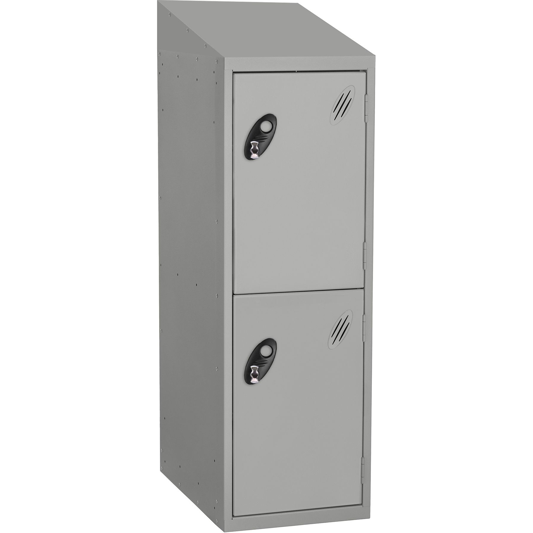 The sloping top keeps the area tidy by making cleaning easier and preventing items from being placed and left on top of the locker.