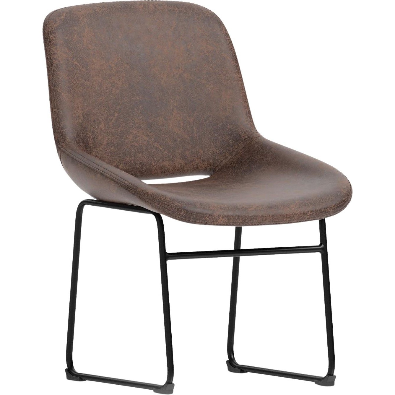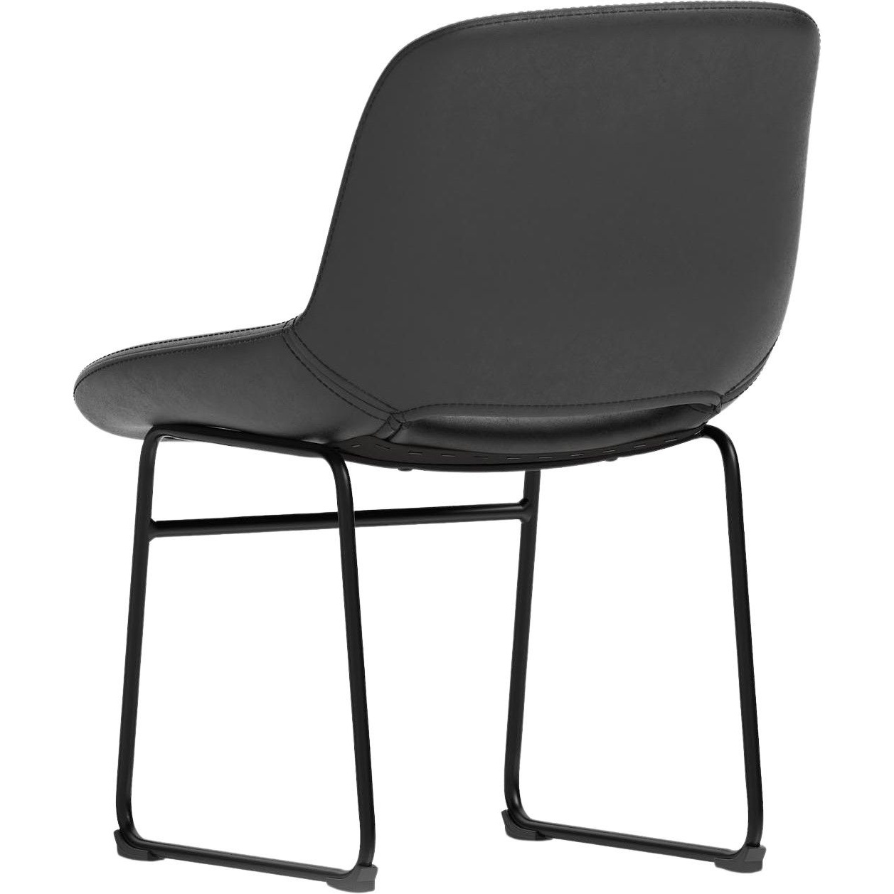 The chair sits on a black steel sled base for a clean contemporary appearance.