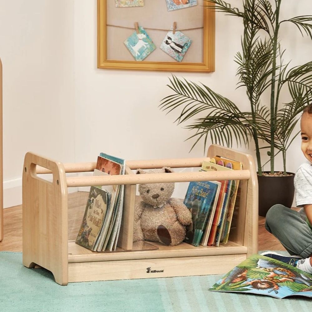 This compact browser is designed to make books and small resources easy for little ones to see and reach, even in tighter learning spaces. Its clear sides give children a full view of what’s inside, encouraging independent choice and tidy up routines. With its sturdy build and smooth beech grab rails, it brings both practicality and a warm, natural look to early years rooms.