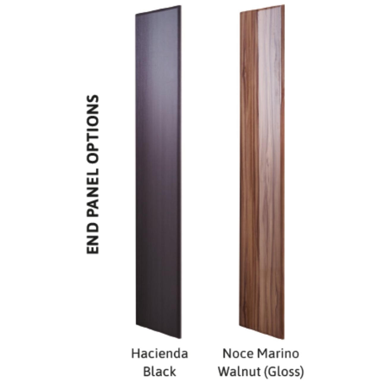 The hard-wearing end panels are available in a sophisticated matt black or a striking Noce Marino walnut gloss finish to match any decor.