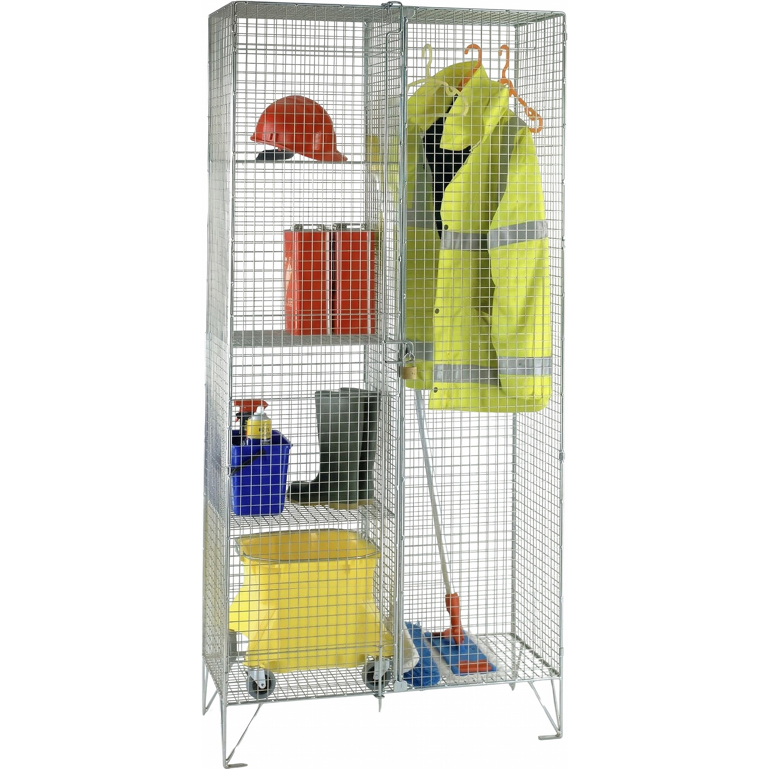 Suitable for indoor workplace, commercial, educational, or industrial settings where janitorial equipment needs secure, visible storage.