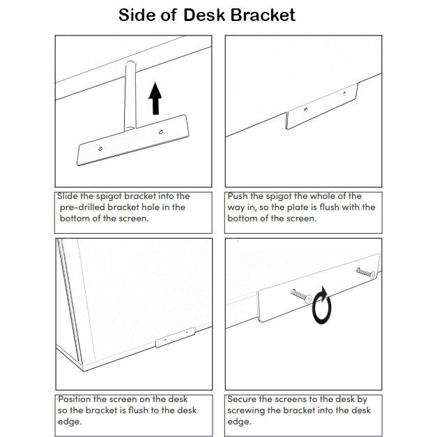 Side screens are supplied with a slim, flat bracket that screws into the edge of the desk.
