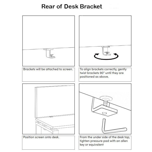 Vienna screens fit desktops up to 16 to 25mm thick and they are supplied complete with brackets.